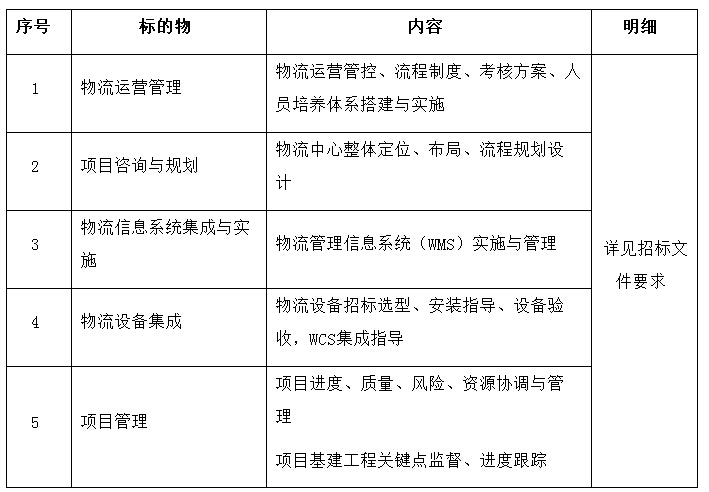 综合仓库三现代商业物流中心整体运营解决方案项目招标涉及的产品、实施和服务: