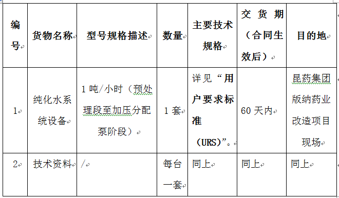 PP电子集团版纳药业改造项目纯化水系统设备采购招标公告