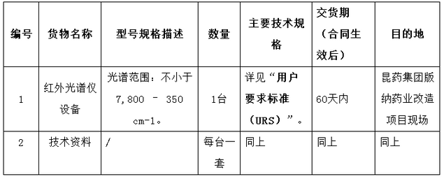 PP电子集团版纳药业改造项目红外光谱仪设备采购招标公告