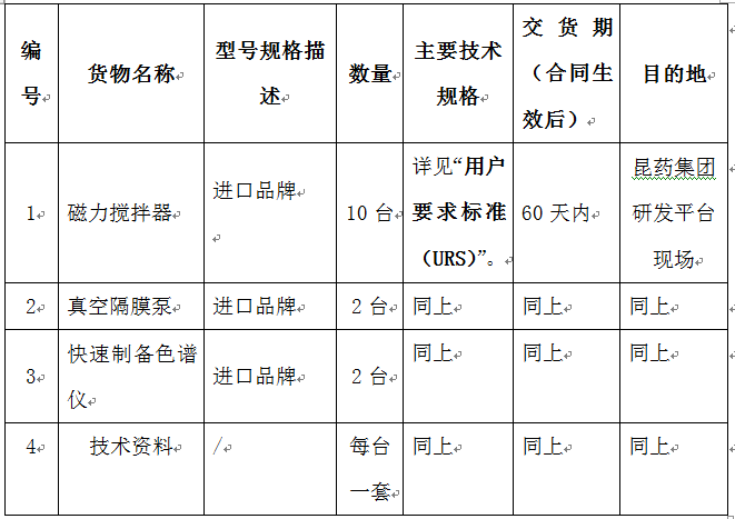 2、招标设备数量及技术要求:
