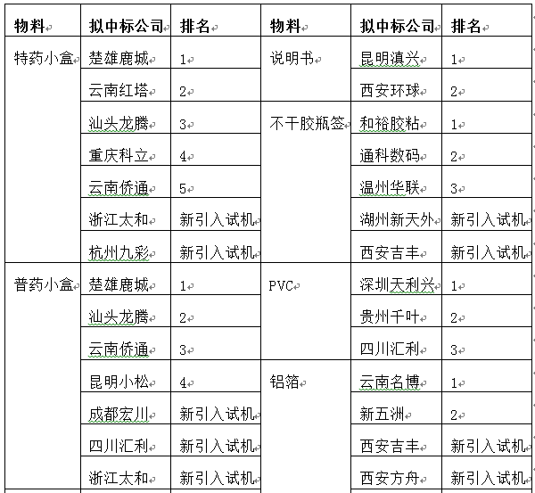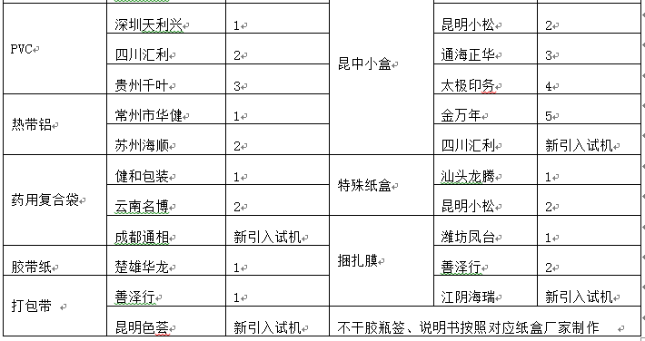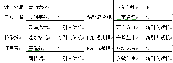 4、内包材新增供应商待关联审评的相关政策、内包材新增供应商流程明确以后再确定新增供应商名单。或根据各公司的实际情况选择是否新增。