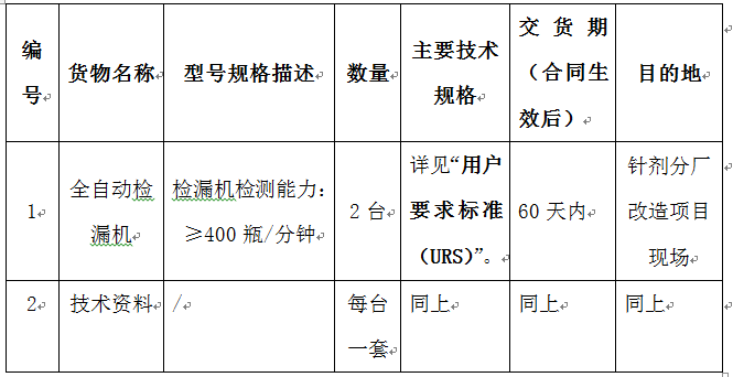 PP电子集团针剂分厂全自动检漏机设备采购招标公告