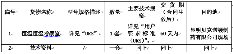 昆明贝克诺顿制药有限公司恒温恒湿考察室采购招标公告