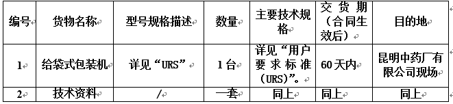 昆明中药厂有限公司给袋式包装机采购招标公告