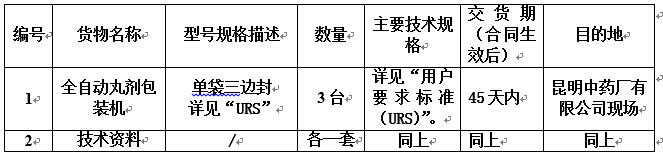 昆明中药厂有限公司全自动丸剂包装机采购招标公告