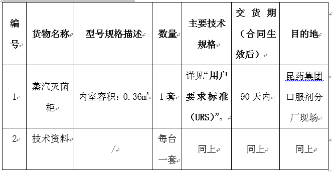 PP电子集团口服剂分厂蒸汽灭菌柜设备采购招标公告