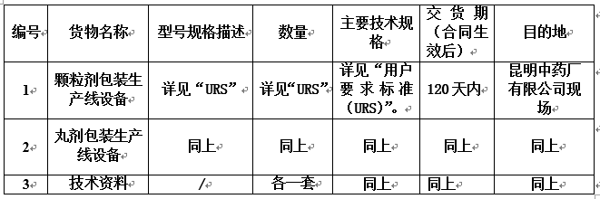 昆明中药厂有限公司颗粒剂、丸剂包装生产线设备采购招标公告