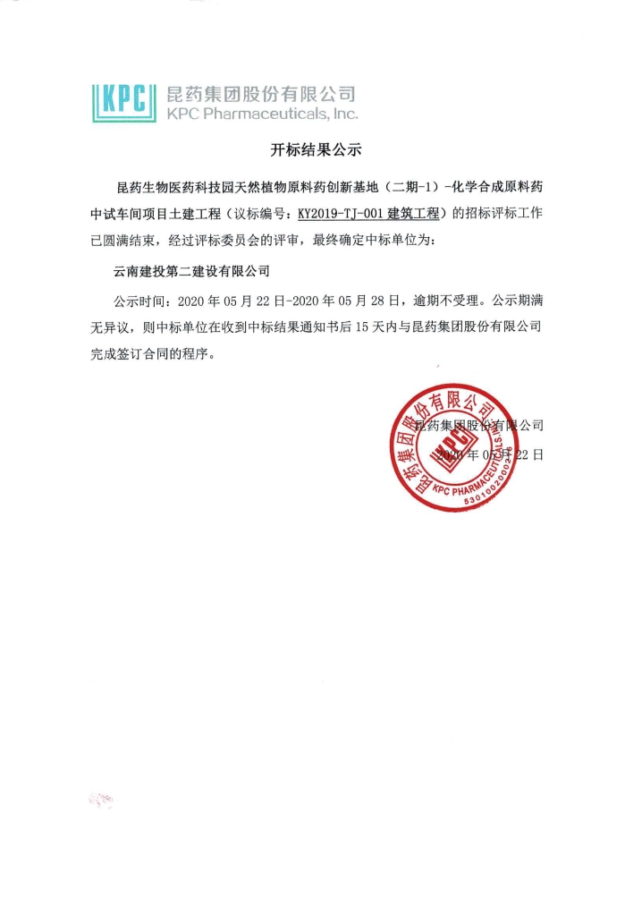 PP电子生物医药科技园天然植物药创新基地化学合成原料药中试车间项目土建工程中标公示
