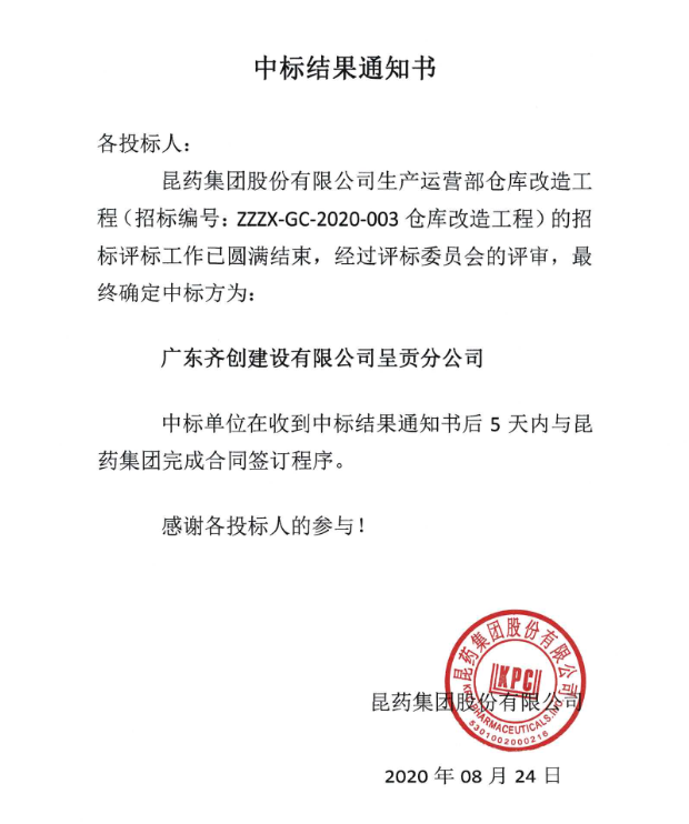 <span class="bdsharebuttonbox" data-tag="share_3" data-sharetitle="中标结果公示(生产运营部仓库改造工程)"><a href="#" class="bds_sqq" data-cmd="sqq" title="分享到QQ好友"></a><a href="#" class="bds_weixin" data-cmd="weixin" title="分享到微信"></a><a href="#" class="bds_qzone" data-cmd="qzone" title="分享到QQ空间"></a><a href="#" class="bds_tsina" data-cmd="tsina" title="分享到新浪微博"></a><a href="#" class="bds_more" data-cmd="more"></a></span> 中标结果公示(生产运营部仓库改造工程) <span><i class="ico-1"></i>2020-08-28</span><span class="views"><i class="ico-1"></i><b id="viewCountId"></b></span><span id="switcher"> <a href="javascript:void(0)" id="big"><i class="ico-1"></i></a> <a href="javascript:void(0)"><i class="ico-1"></i></a> <a href="javascript:void(0)" id="small"><i class="ico-1"></i></a> </span> 上一条开标结果公示(信息科技(IT)网络及信息安全优化一期项目) 下一条中标结果公示(PP电子集团股份有限公司及子公司2023年度财产一切险及机器损坏险)