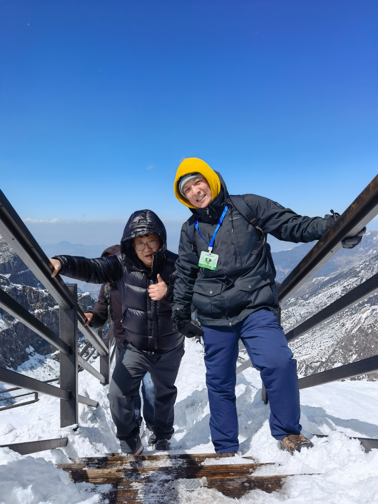 晨光微露,大家整齐有序地开始了攀爬登山。山冰路滑、寒雪及腰,体力消耗极大,然而每个人都是满脸的兴奋,因美景而愉悦。欢声笑语回荡在山风中,整个爬山过程中充满了温馨、愉快,大家相互搀扶,相互帮助,相互鼓励,没有一个人掉队,最终71人全员成功登上山顶。