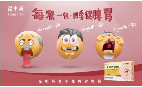同时着眼产品端,昆中药参苓健脾胃颗粒将再定位!以每餐一包,四季健脾胃为场景,精准营销、精准触达,实现画像场景内容一体化:如孩子挑食来一包、食欲不振来一包、酒前应酬来一包、大餐油腻来一包、加班熬夜来一包、四季进补来一包....直击痛点,迅速抢占用户心智。